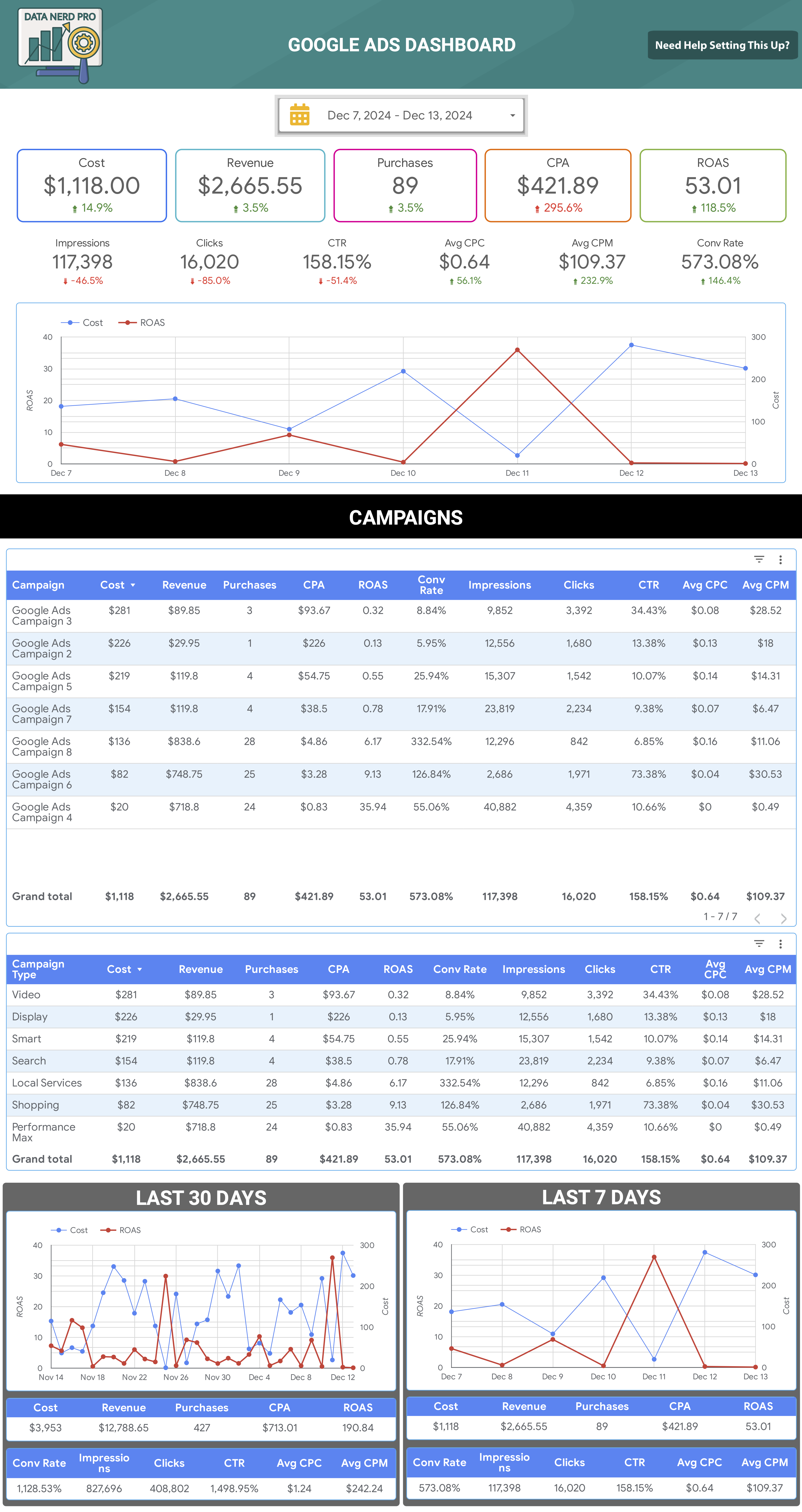 This Google Ads template will help digital marketers understand the performance & metrics of their Google Ads paid media campaigns.