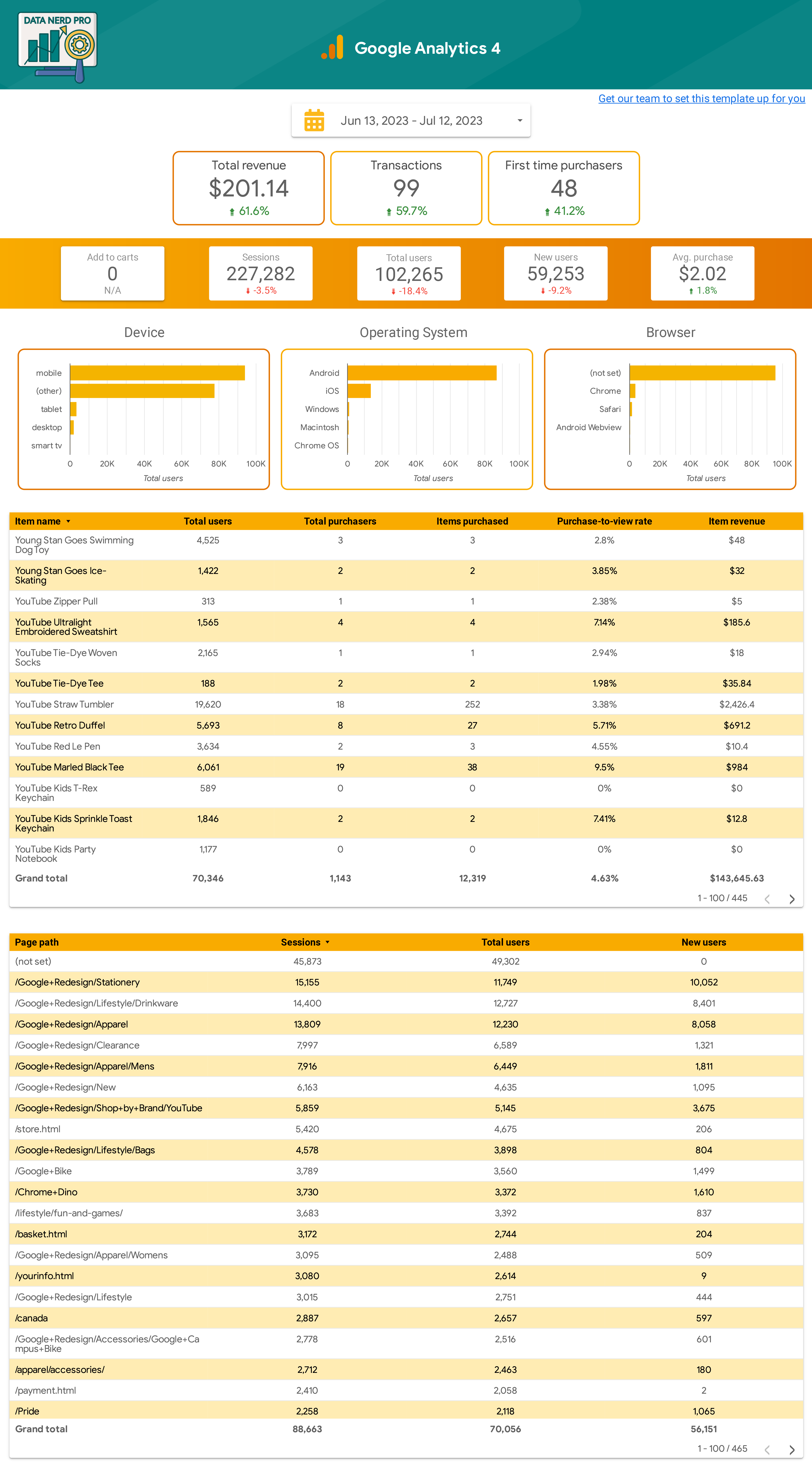 This Google Analytics 4 (GA4) template will help digital marketers understand the metrics of their Google Analytics 4 (GA4) property.